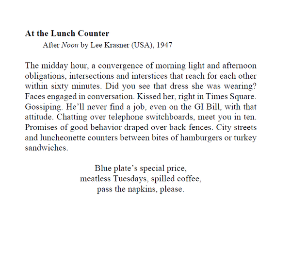Barbara Krasner is a New Jersey-based poet and author of several novels in verse and poetry collections, including Poems of the Winter Palace (Bottlecap Press, 2025), The Night Watch (Kelsay Books, 2025), and the forthcoming The Wanderers (Shanti Arts, 2026), and Memory Collector (Kelsay Books, 2027). She has been leaning into writing in response to art as a way to grapple with the confluence of several chronic conditions.