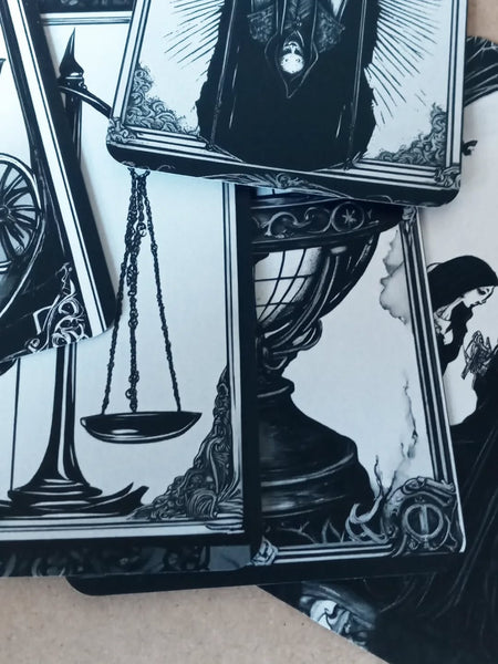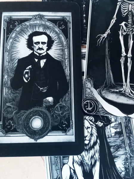 Based loosely on Tarot's major arcana, this set of 22 professionally printed cards can be used in divinatory and creativity-based exercises and explorations. Each card reflects the stories, themes, and lore of Poe's writings, as well as their gothic, old-world feel. The set arrives wrapped in black tissue paper with a bird skull charm.